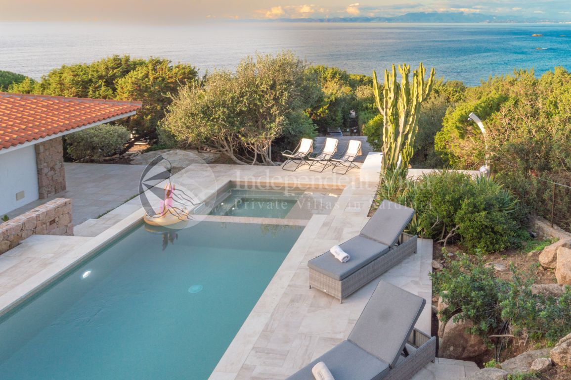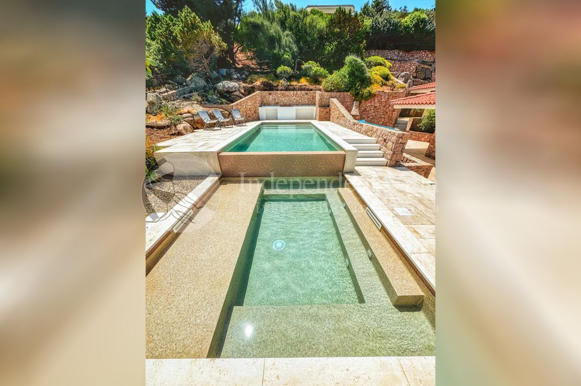 Il vero gioiello della proprietà è la piscina di nuova costruzione con splendida vista mare, affiancata da una piscina più piccola integrata, perfetta per la sicurezza e il divertimento dei bambini. Intorno, diversi spazi esterni invitano a rallentare: zone dedicate al relax, un’area attrezzata per le cene all’aperto e una terrazza arredata con comodi divanetti. Il corrimano in vetro lascia lo sguardo libero di spaziare tra il blu del mare e il verde della vegetazione, regalando panorami da vivere in ogni momento della giornata.