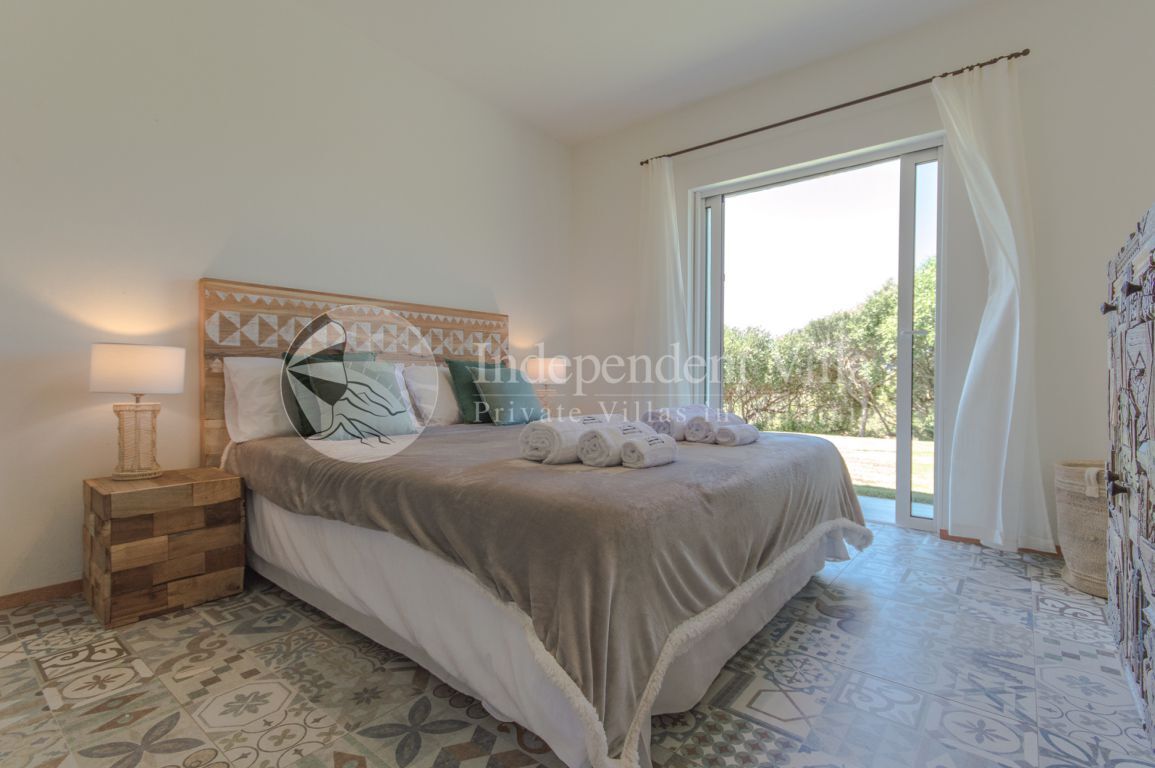 Il y a cinq chambres, toutes avec la climatisation et sortie sur le jardin-piscine. Trois sont doubles et ont une salle de bain avec douche et une double a une douche extérieure.